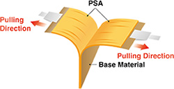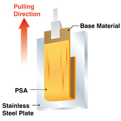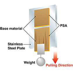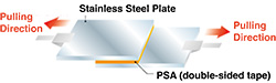 This is a measurement method for double-sided tape. It represents the force required to peel the tape from between two stainless steel plates when pulled horizontally. A higher value indicates the ability to hold heavier objects.