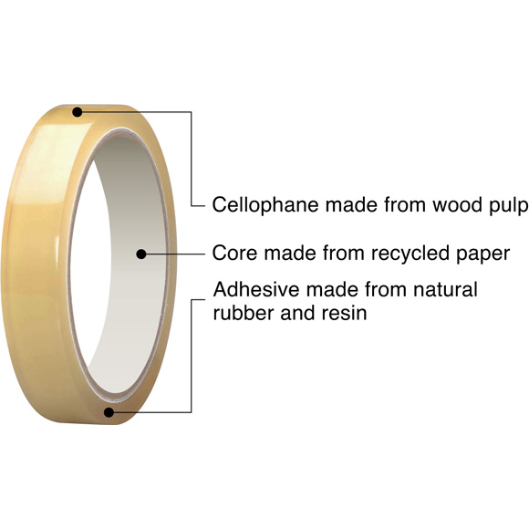 - The film, the adhesive, and the core are mostly made out of natural materials. The film is biodegradable and compostable.